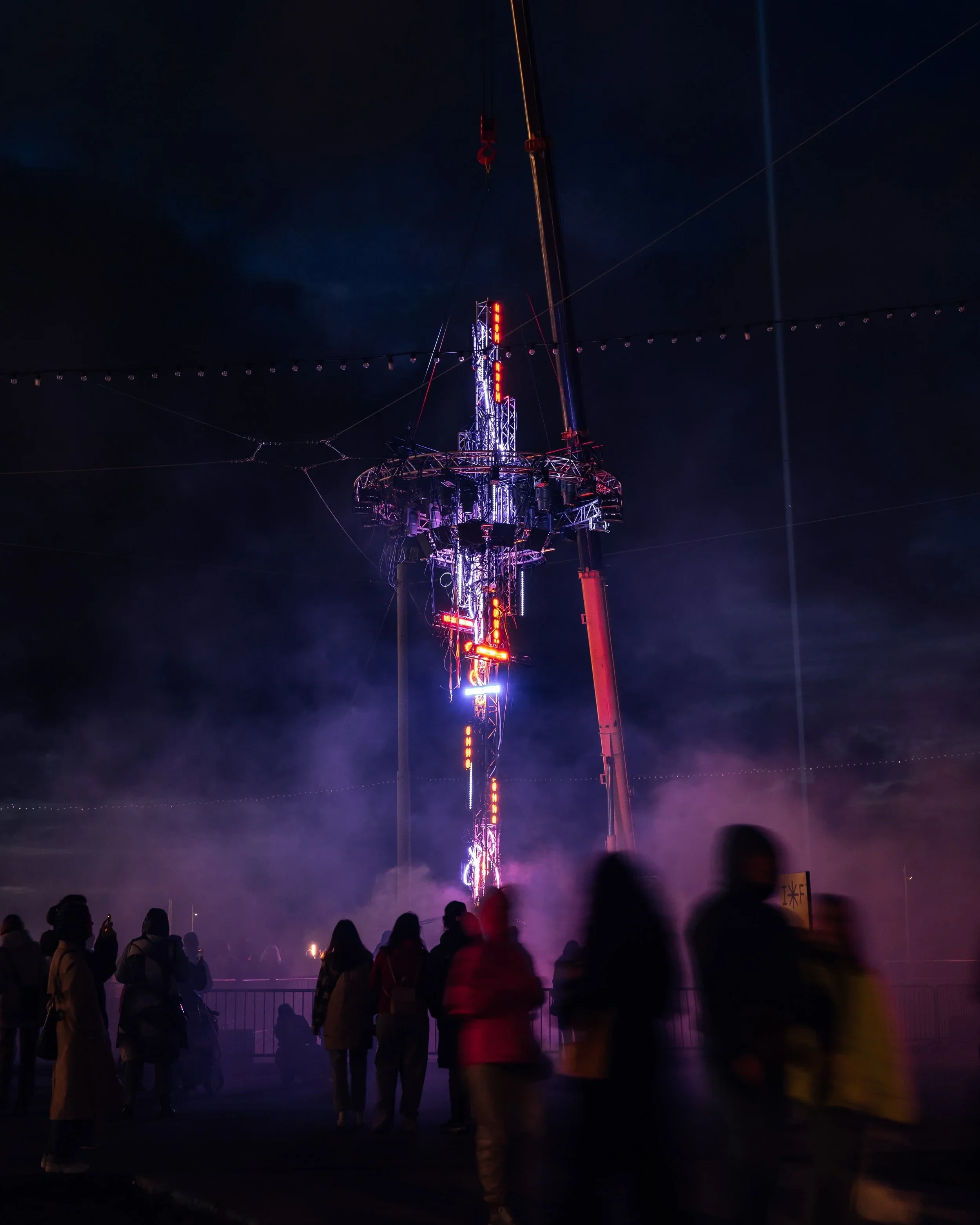 TERMINAL is a spatial interface of the posthuman era, in which technology and humanistic thinking merge into a unified system of experience. The work creates an environment of interfacing, where human presence enters into direct contact with technical structures, transforming from an observer into an active element of the process. The installation unfolds the image of the posthuman as a figure of transition. Here, the human exists within a system created by themselves and interacts with it through the body, light, and perception. The interface functions as a form of ethics, in which technological development is correlated with responsibility, vulnerability, and attentiveness to human experience.